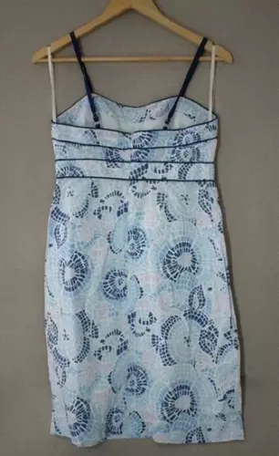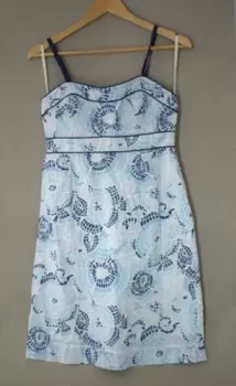Vestido blanco con azul tirantes talla S. Vestido blanco y azul con tirantes azul obscuro, estampado tipo Talavera súper fresco ideal para temporada.