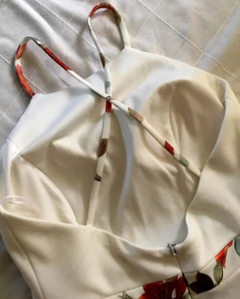 Vestido blanco con flores. - En la escalada los tirantes son cruzados - No está roto- Sin detalles