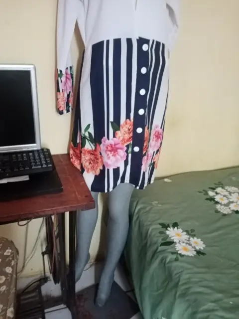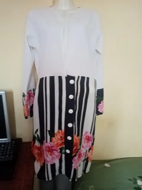 Vestido de dos colores blanco y flores talla M puesto una vez en muy buen estado queda a media rodilla,