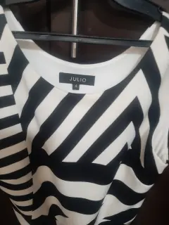 Vestido blanco con negro, zebra. Vestido corto, blanco y negro con cinturón. Talla #4 . Marca Julio. Lo puedes usar para cualquier ocasión. En excelente estado