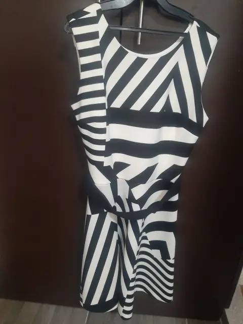 Vestido corto, blanco y negro con cinturón. Talla #4 . Marca Julio. Lo puedes usar para cualquier ocasión. En excelente estado