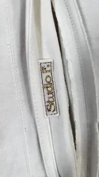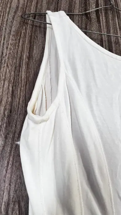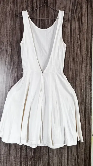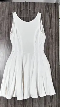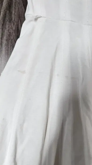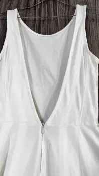 Vestido blanco escote en la espalda. Vestido blanco, estudio F, con escote en la espalda forma en V, hermosa caída de princesa, tiene un poco manchado de las axilas