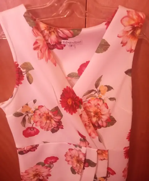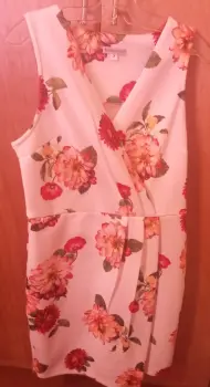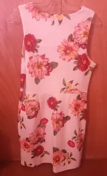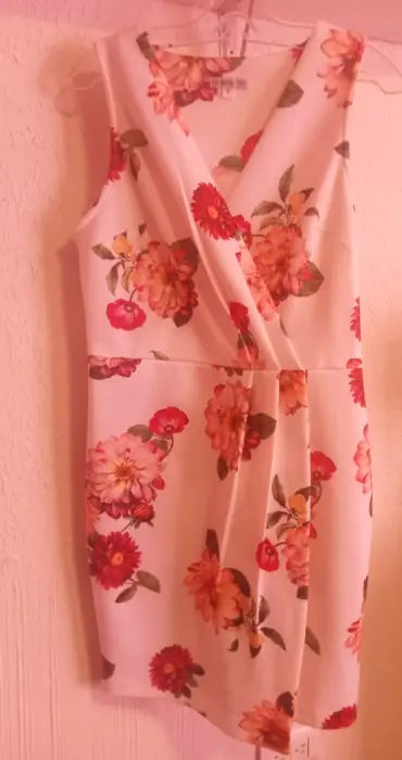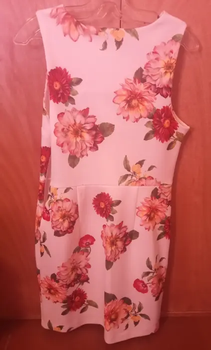 Vestido blanco estampado. Vestido blanco con estampado de flores grandes, talla chica, es corto y ajustable al cuerpo.