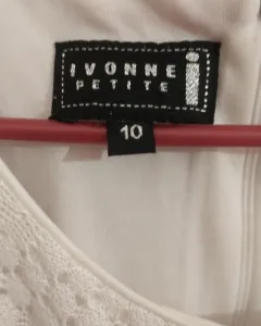 Vestido blanco, marca Ivonne con olanes en el hombro, talla 10. Tiene como detalle una mancha en la parte delantera.