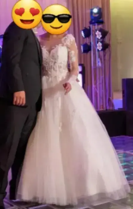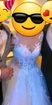 Vestido blanco novia, con transparencias super padres , corsét super padre , pedrería en todo el vestido y más en la parte de arriba, tiene copas incluidas