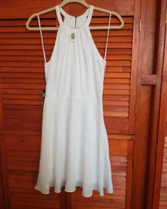 Vestido blanco veraniego. Fresco y elegante, este vestido puede usarse casual o para eventos, tela fresca y suave.