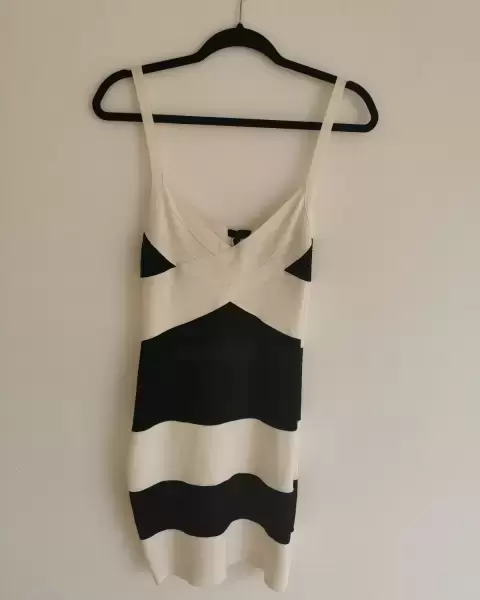 Vestido Blanco y Negro. Hermoso Rue de la Paix, talla L pero queda mejor a M