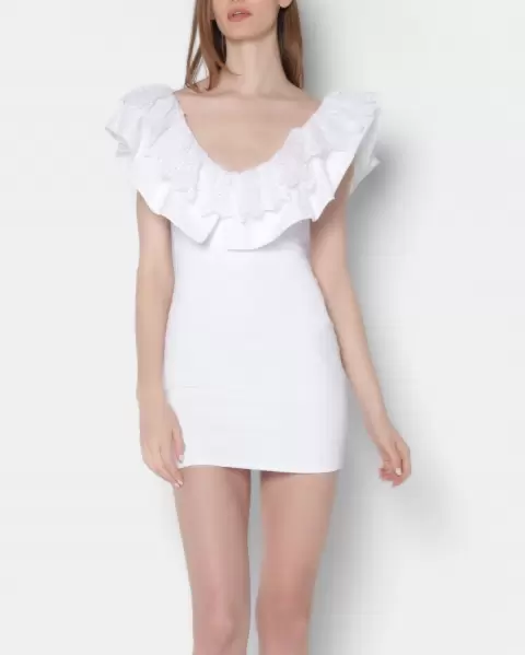 Vestido blanco Zara. Hermoso vestido blanco Zara. Nuevo con sus etiquetas. Pegadito con su cuello tipo volante.