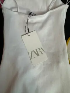 Vestido Blanco Zara. Vestido blanco, escote en la espalda, abierto en la parte del abdomen, corto, nuevo, con etiqueta, Talla: Chico.
