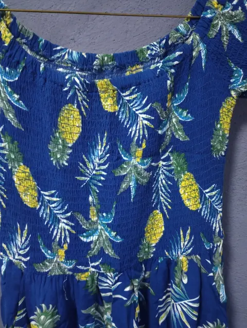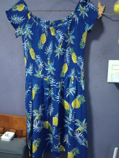Vestido blue. Vestido arriba de las rodillasEs a los hombros, estira en la parte del pecho pero no mucho Tela fresca