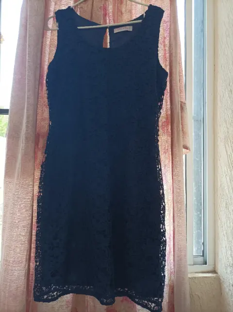 Vestido blue. Vestido color azul, con forro, 90% body, 100% poliester, 10% algodon, cuello redondo.sin manga.