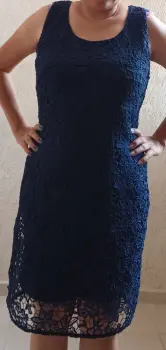 Vestido color azul, con forro, 90% body, 100% poliester, 10% algodon, cuello redondo.sin manga.