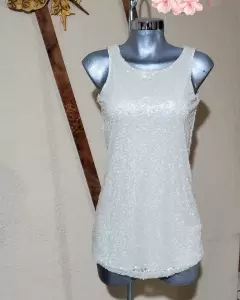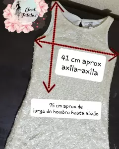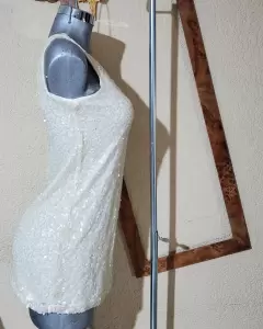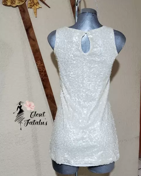 Vestido - Bluson de fiesta. Vestido de fiesta muy elegante, trae forro y encima malla con lentejuela tejida en todo el vestido con hilo de seda.Material: 100% poliéster y trae un ligero spandex en el forro.Color: IvoryTalla: SDetalles: lo muestro en foto, esta ubicado en el forro y no se ve para nada.
