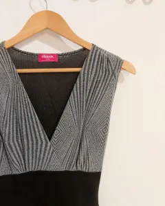 Vestido brillante negro. Vestido negro de la parte de arroba plateado sin mangas corto con escote en V, es strech no se transparenta y queda increíble a tu figura.