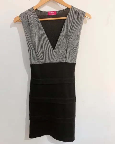 Vestido negro de la parte de arroba plateado sin mangas corto con escote en V, es strech no se transparenta y queda increíble a tu figura.