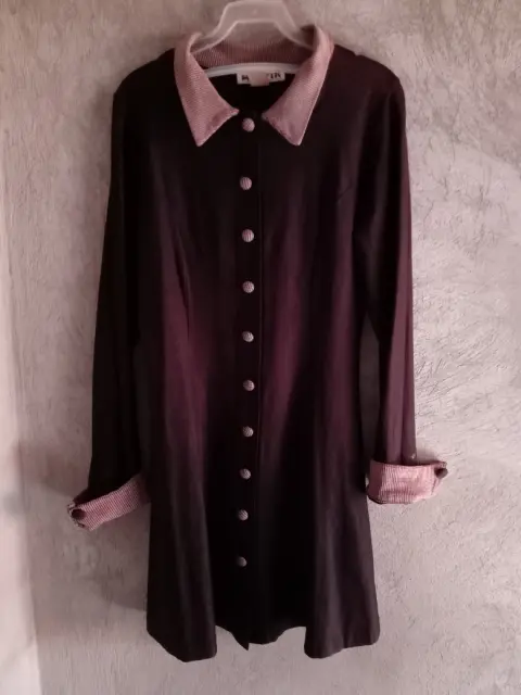 Bello vestido tipo colegiala ,ajusta perfecto de la cintura y la tela es tipo strech ,es de manga larga y tiene botones cafés que dan un mejor toque colegial.