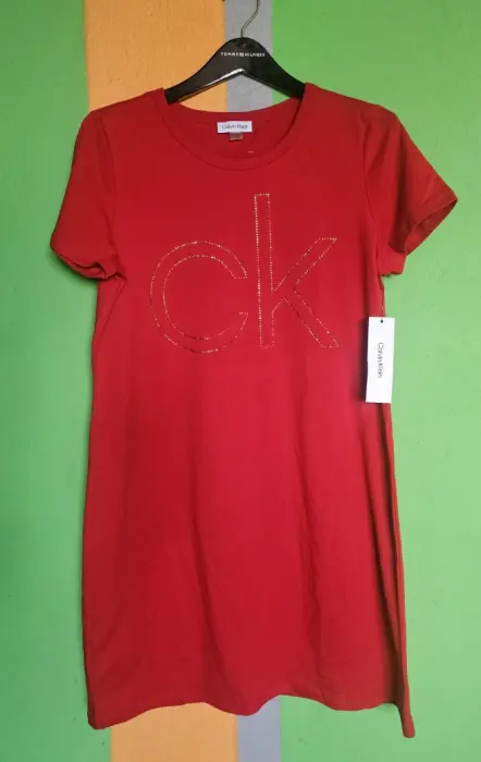 Vestido Calvin Klein. Hermoso Vestido Casual Calvin Klein, Nuevo, logo al frente acabado en pedreria de alto brillo,Talla L.