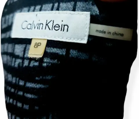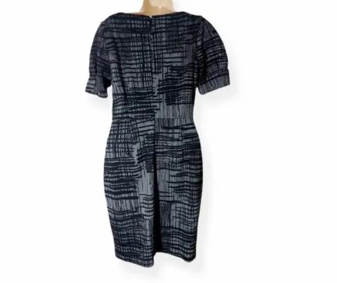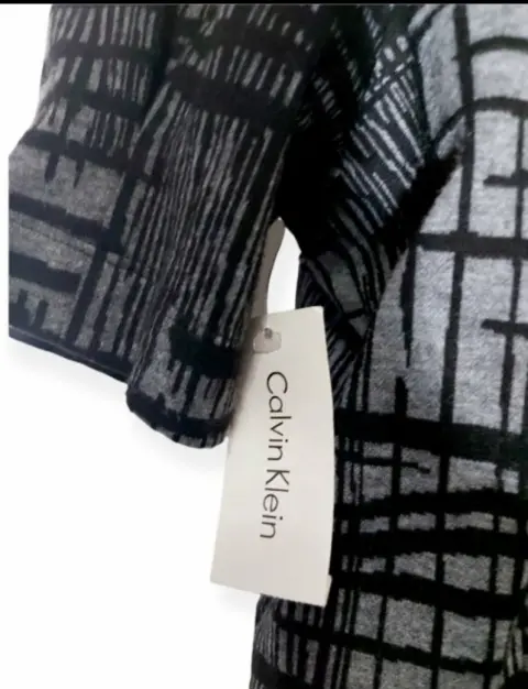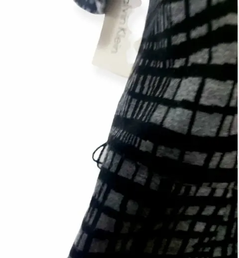 Lindo vestido calvin klein color gris con negro, esta en perfecto estado con etiqueta , solo que al estar guardado se ve un poquito amarillo en la etiqueta donde dice la talla .Tiene las tiritas por donde pasa el cinturón, pero no trae el cinturon