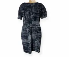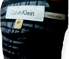 Vestido Calvin Klein. Lindo vestido calvin klein color gris con negro, esta en perfecto estado con etiqueta , solo que al estar guardado se ve un poquito amarillo en la etiqueta donde dice la talla .Tiene las tiritas por donde pasa el cinturón, pero no trae el cinturon