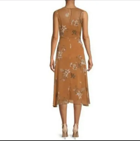 Vestido Calvin Klein nuevo. Hermoso vestido con estampado de flores🍂🍁con forro abajo de un vestido de tirantes en tono cafe cinnamon, fresco y cómodo te hará sentir coqueta en todo momento.🍂🍁