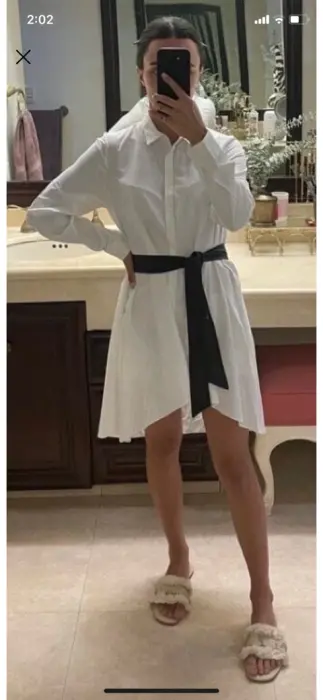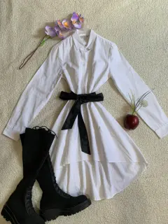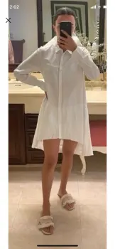Vestido camisero. Puedes ponerle un cintó para que se vea más hermoso, tiene 48 cms de ax ax , solo tiene. Una pequeña manchita en el cuello que puedes apreciar en la fotp