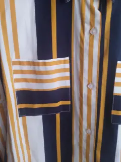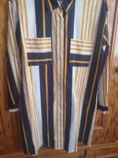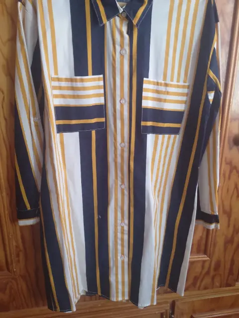 Vestido camisero. Excelente combinación de colores, azul marino, blanco y mostaza, vestido nuevo sin etiqueta, talla grande, bolsillos al frente, hermoso y elegante