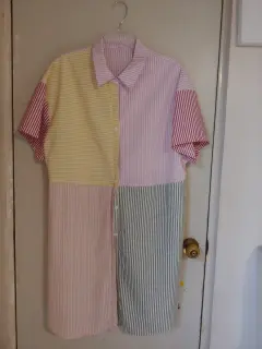 Vestido camisero. Vestido camisero de rayas de color combinado de hombros caídos hermosos colores para esta temprada, se puede utilizar en cualquier ocasion .Marca : SheinTalla XL