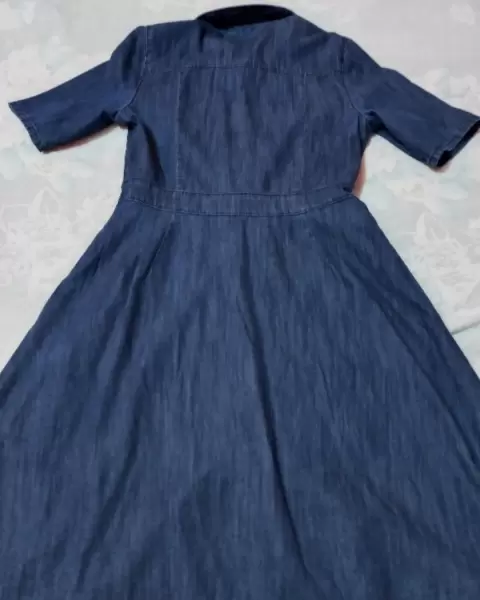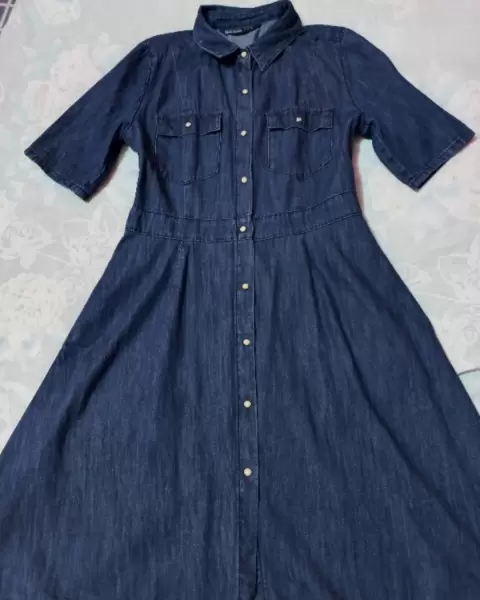 Vestido camisero mezclilla suave, cierre por delante con botones a presion. Bolsas laterales. Talla 28 M está un poco reducido.