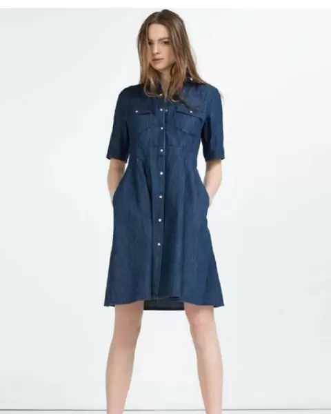 Vestido camisero mezclilla zara. Vestido camisero mezclilla suave, cierre por delante con botones a presion. Bolsas laterales. Talla 28 M está un poco reducido.