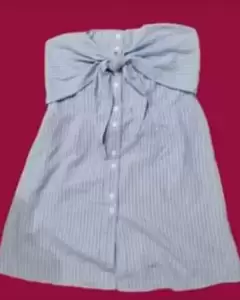 Hermoso vestido camisero de botones en color azul cielo con rallas blancas que destacan las curvas. Talla M.