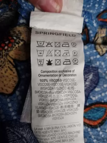 De tela viscosa estira un poco, talla 32, tiene bolsas a los lados, corto arriba de la rodilla, puedes usar los hombros descubiertos o arriba