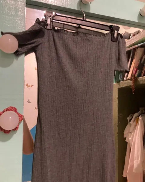 Vestido canale gris. Vestido shein gris descubierto los hombros súper lindo