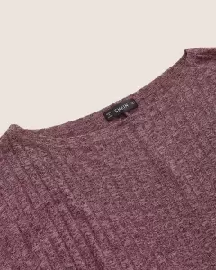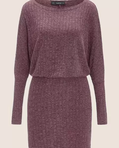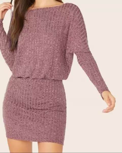 Vestido tejido de canalé color rosa , ajustado, de manga murciélago. La tela es delgada y transparenta un poco, pero usando la ropa interior adecuada no se notará.