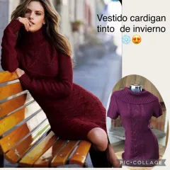 Padrísima vestido de cárdigan color tinto combinarlo con botas o botines muy calentito Excelente calidad y precio