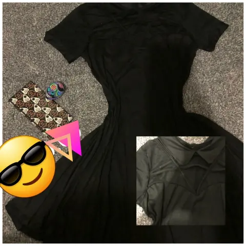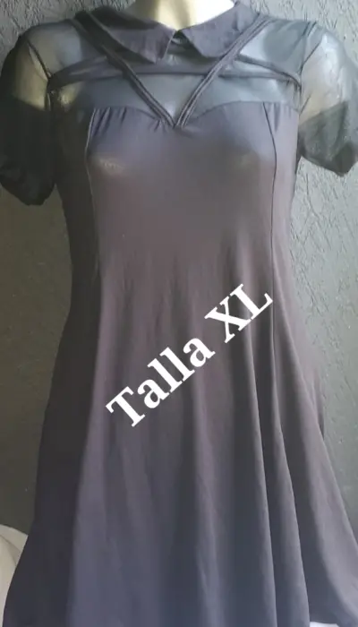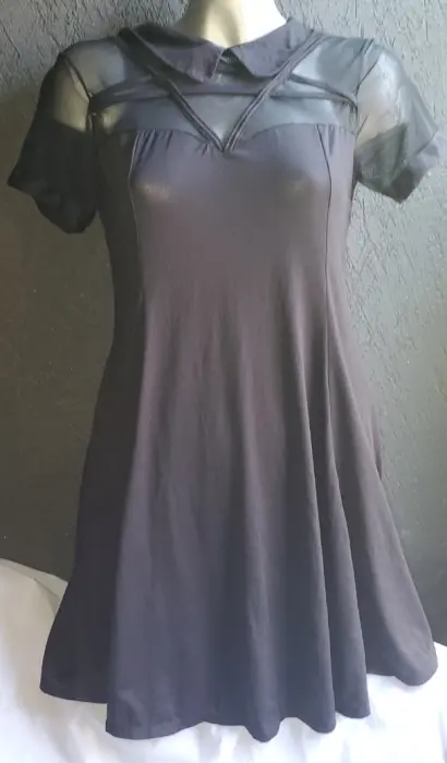 Vestido casual. Vestido circular , color negro con aplicación de pentagrama en mesh, manga corta,