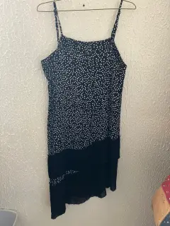 Lindo vestido de tirantes , corte esgado, en la parte de abajo trae un decorado plisado , el corte es recto .