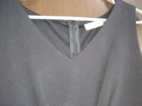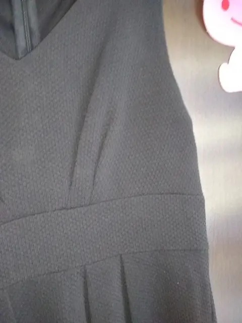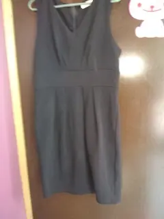 Vestido negro, sin mangas con escote en V, detalle bonito en cintura lo que lo hace ver qué se ajusta a tu cuerpo, corto pero no tanto con tenis blancos se ve increíble, está arrugado de estar guardado.