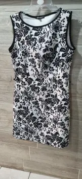 Vestido casual. Vestido casual, con estampado floral en colores blanco y negro. Tela ligera