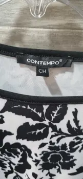 Vestido casual, con estampado floral en colores blanco y negro. Tela ligera