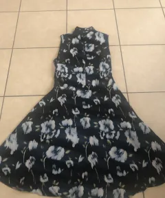 Vestido Casual. Vestido casual talla 6 petite, casual azul marino con estampado floral tela fresca