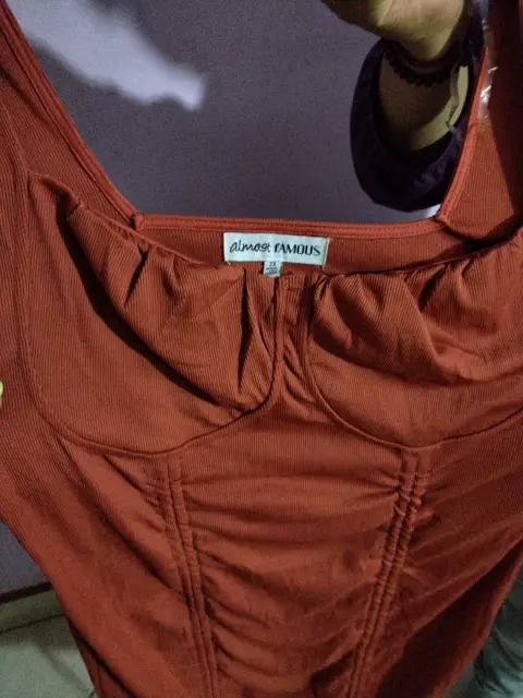 Vestido casual. Talla 2xColor ladrilloLlega arriba de la rodillaTiene cintas para encoger la altura
