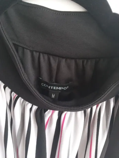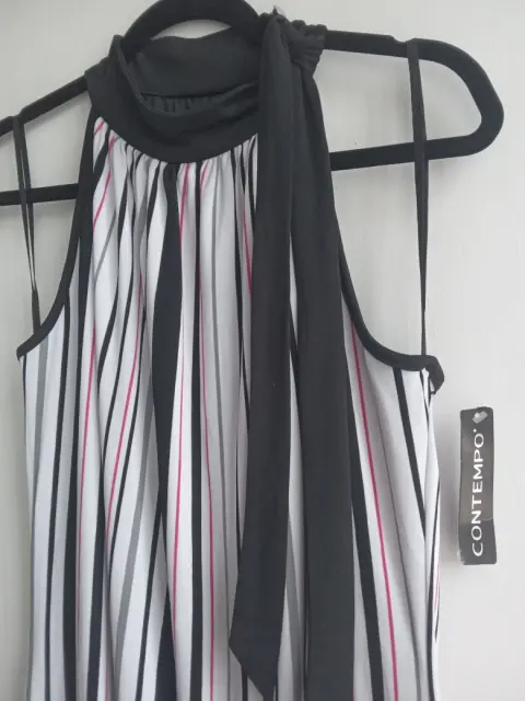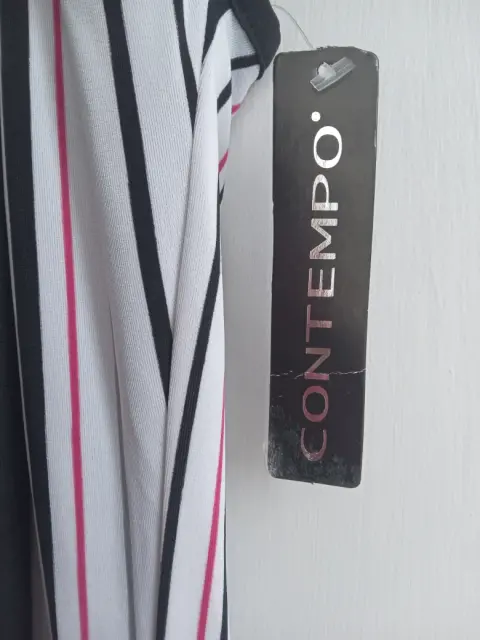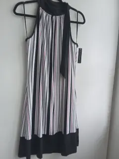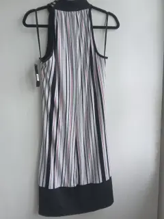 Vestido casual a rayasNuevoTela lycra gruesaDebajo de las rodillasMarca contempoElegante Detalle de botones a un costado del cuelloContar para ajustar el cuello