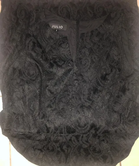 Vestido negro peplum de encaje marca Julio, en buen estado, clásico y elegante