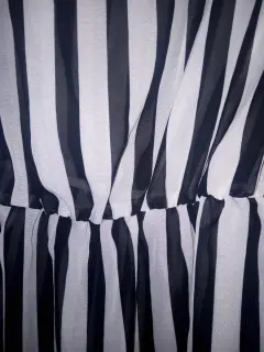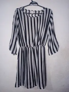 Vestido casual a rayas transparente. Vestido casual a rayas transparente en blanco y negro, manga 3/4. Tela y costura en buen estado. De axila -axila 110 cm y de largo 88 cm. En la cintura tiene resorte.