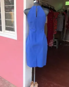 Vestido casual azul. Hermoso vestido de cuello tipo halter, de tela strech, queda ajustado, es en color azul claro, en talla S.