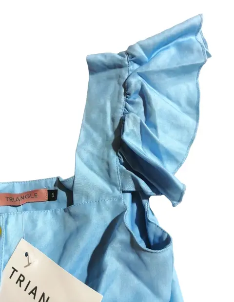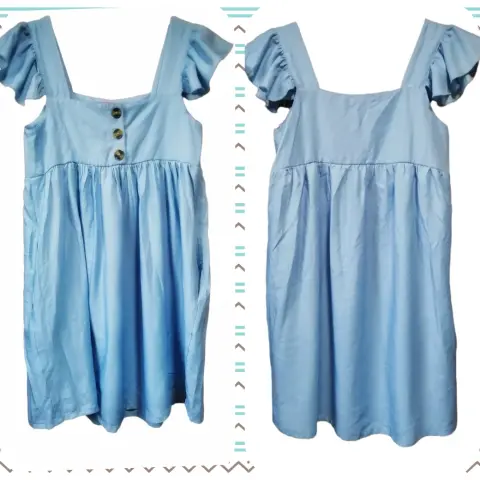 Vestido casual azul cielo 💙. Hermoso vestido tipo batita con olanes en las mangas y bolsillos a los costados 💙 😍Súper fresco y versátil ✨Talla S puede quedar a M porque es holgadito