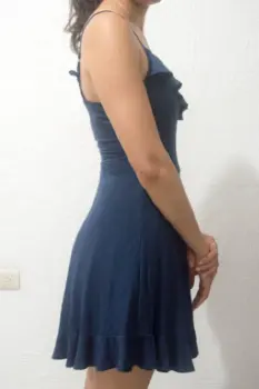 Vestido casual azul marino con olanes