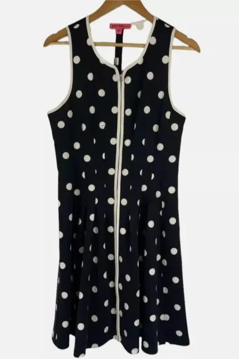 Vestido Casual BETSEY JOHNSON. 🌼 ¡Añade un toque divertido a tu guardarropa con el vestido casual BETSEY JOHNSON! 🌼Este encantador vestido con lunares blancos es perfecto para las amantes del estilo vintage. Con un cierre largo frontal, combina comodidad y elegancia en una sola pieza, ideal para cualquier ocasión.✨ Características:❤️Diseño de lunares que nunca pasa de moda.❤️Cierre frontal que facilita el ajuste y añade un toque único.❤️Tejido ligero y cómodo, perfecto para el día a día o una salida especial.🎉 Destaca con un look divertido y chic! Combínalo con tus accesorios favoritos y prepárate para recibir cumplidos.🛒 ¡Haz tu pedido ahora y lleva la moda a un nuevo nivel con BETSEY JOHNSON!