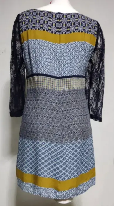 Lindo vestido con encaje en las mangas tiene forro la tela es muy suave y ligera horma perfecto..