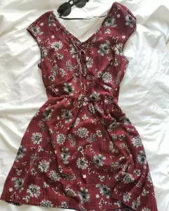 Vestido casual corto floreado. Vestido corto casual con agarre en cintura.Mis medidas son pecho: 95, cintura: 78, cadera: 108, mido 170 y me queda un poco abajo de nalgas. No tiene ningún detalle.